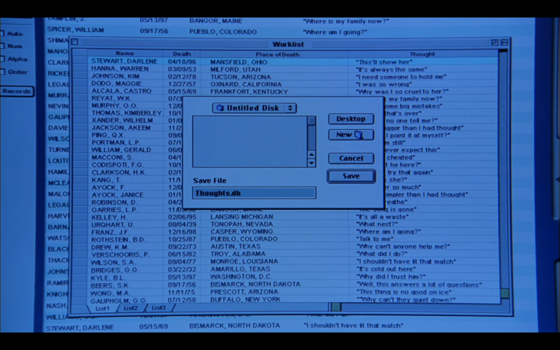 Continuing with Dead Like Me, the appearance of OS 9 on what was, as a prop, some generic desktop PC: