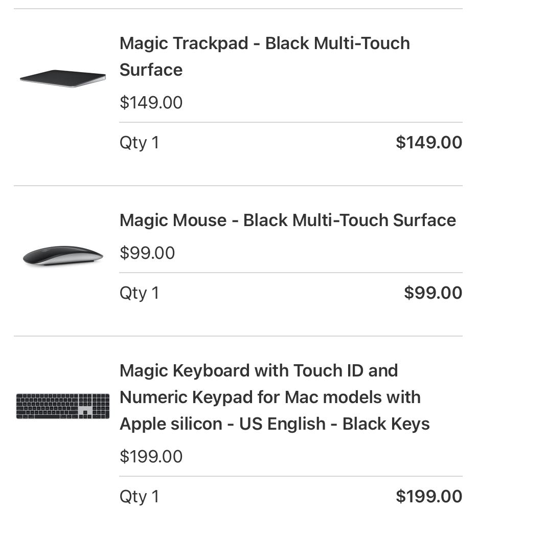 I ordered the M1 Ultra 20-core CPU, 48-core GPU and cancelled it immediately again. 😅 Then I went for the M1 Max 10-core CPU, 32-core GPU. I also ordered the Studio Display with Vesa mount, the black Magic Mouse and the white Magic Keyboard without the number pad.