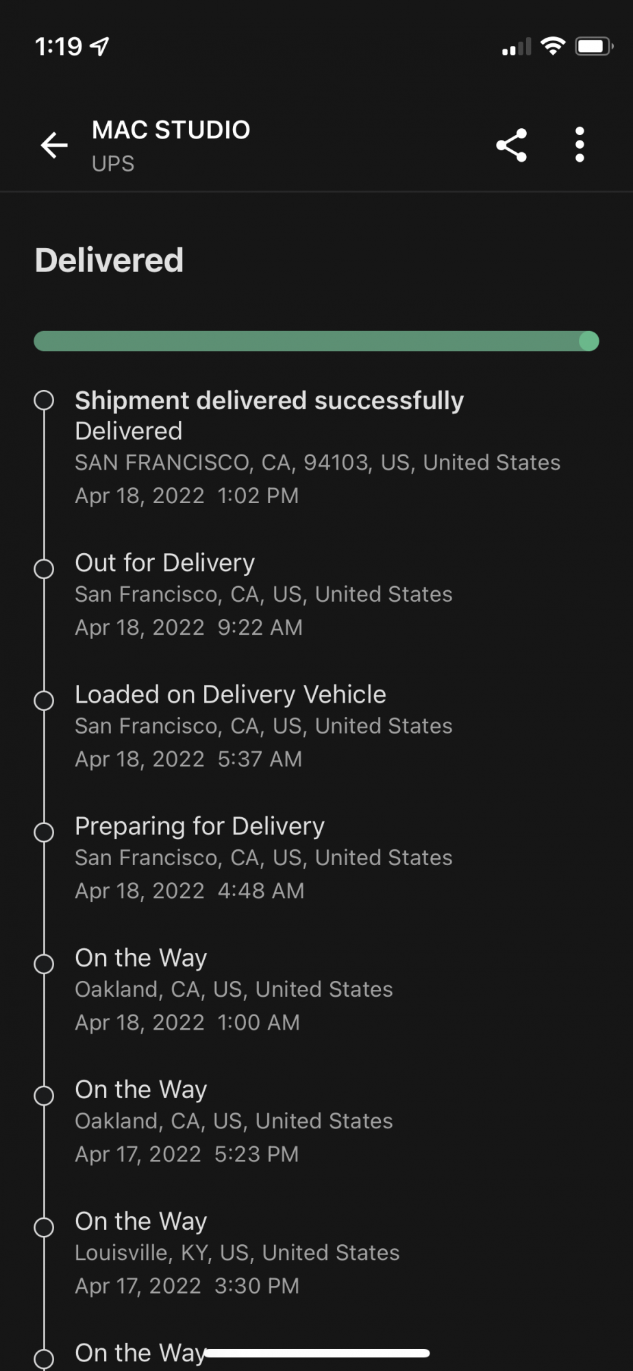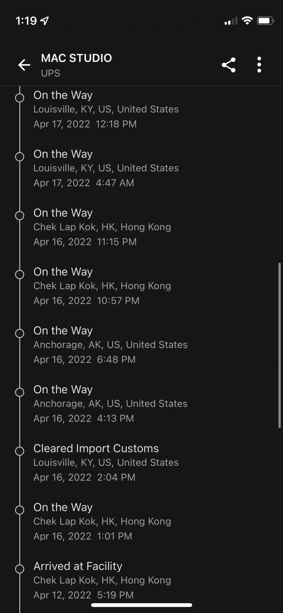 Feeling fortunate, my Studio Ultra order that Apple promised for April 21-28 delivery just arrived early on April 18. For some reason last week UPS was saying it would be delivered on Friday 4/15, but it didn’t even start leaving Asia until 4/16. Apple under-promised and over-delivered, can’t say the same about UPS but I’m happy it’s here!
