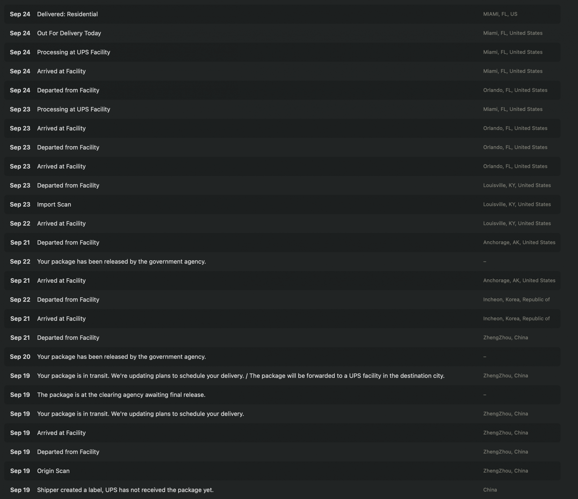 We have confirmed we have the same tracking data. Ours both day departed from facility. Do they clear customs in the US or China?