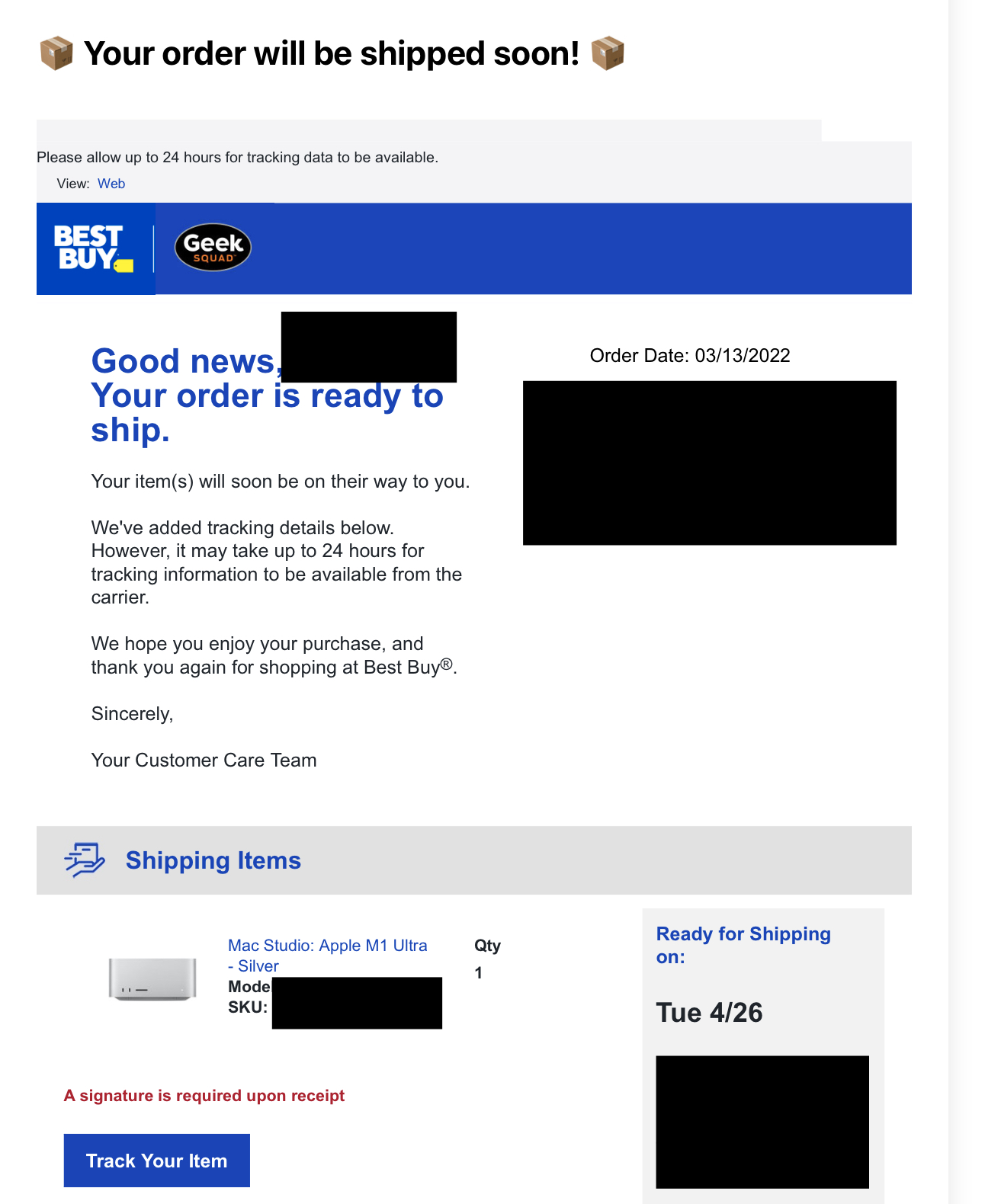 Edit: @hfg it looks like we have similar timelines for our Macs. I wonder if they'll be on the same flight? (It depends on your Mac's final destination?)
