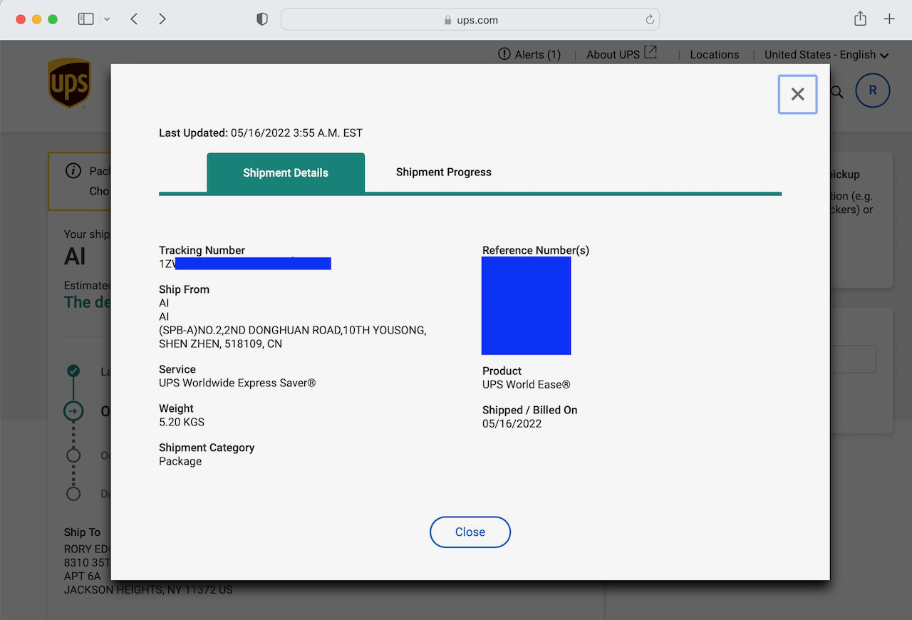 May 14 sometime before 6PM in Shenzhen: "Preparing to Ship"