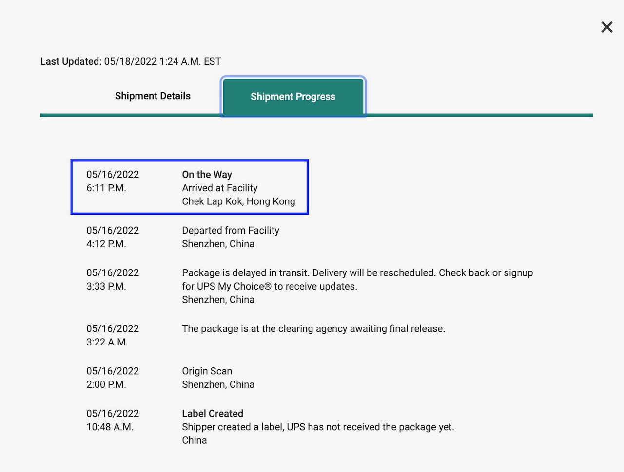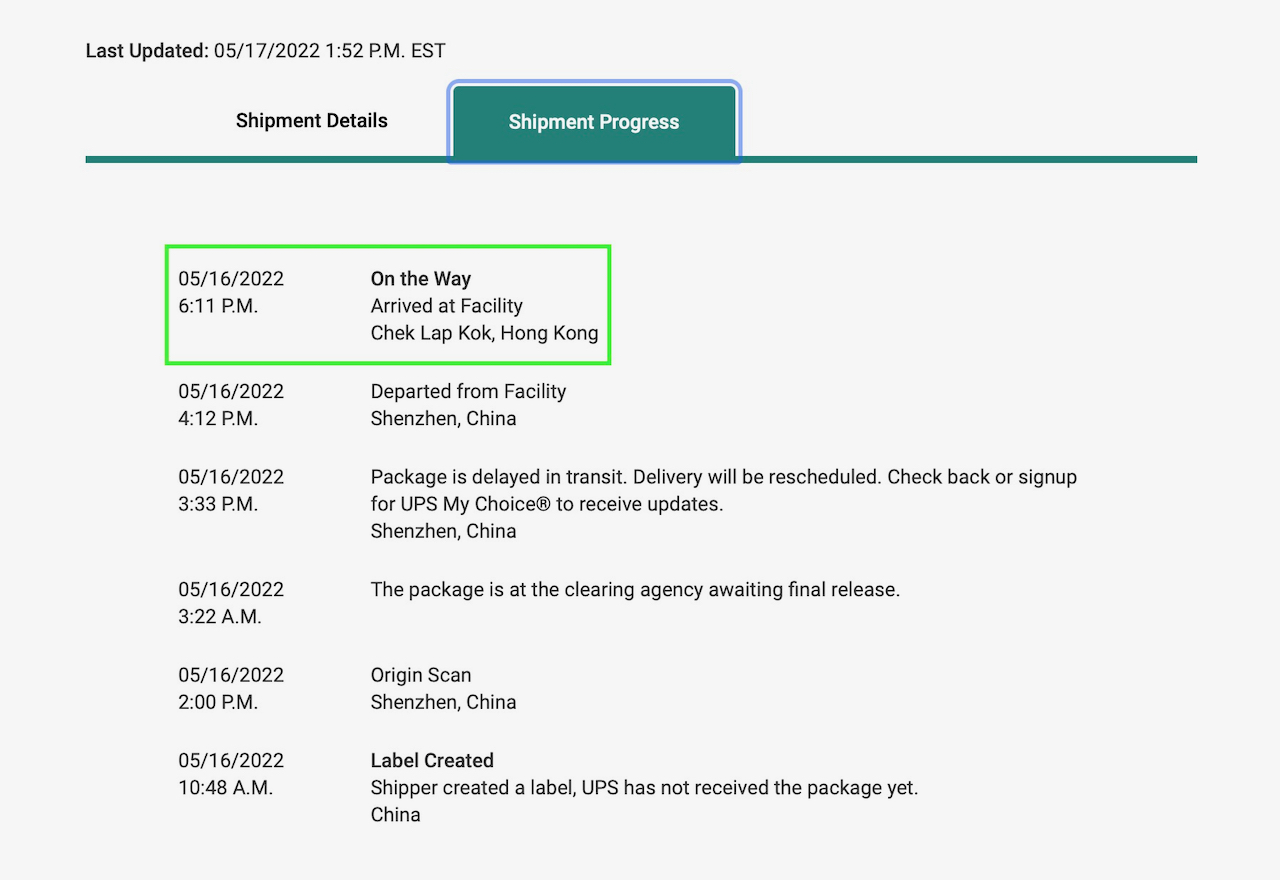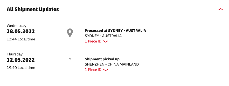 My max left Shenzhen on May 12 but no update since, it’s been almost a week. At what point do I give them a call. Is it likely it’s stuck in the Hong Kong bottleneck but hasn’t been scanned in? It’s coming to Australia so I assumed would be a quick trip from China to Aus. Thankfully the funds were deducted from my account in full a few days ago too.