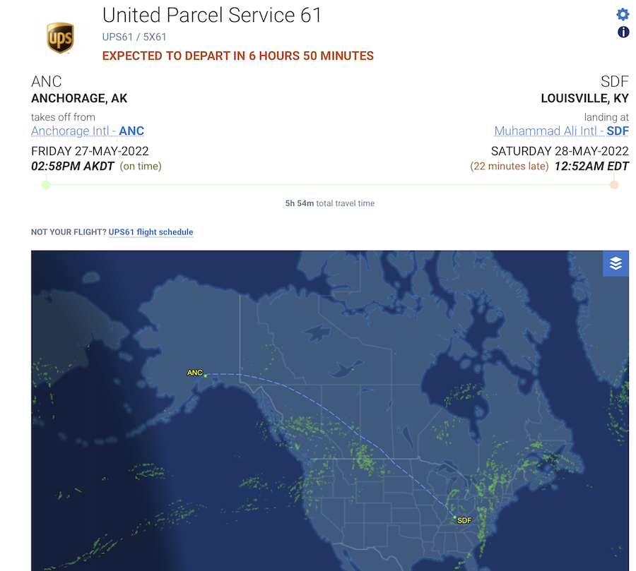 If UPS Tracking has a departure time for Taiwan that differs by an hour or so, the below, which is live, is correct, and UPS's tracking is wrong. I noticed on my own UPS Tracking that UPS initially showed the right departure time and then changed it to a later time that was incorrect. If I recall, it did the same thing for the Anchorage departure. Don't know what that's about.