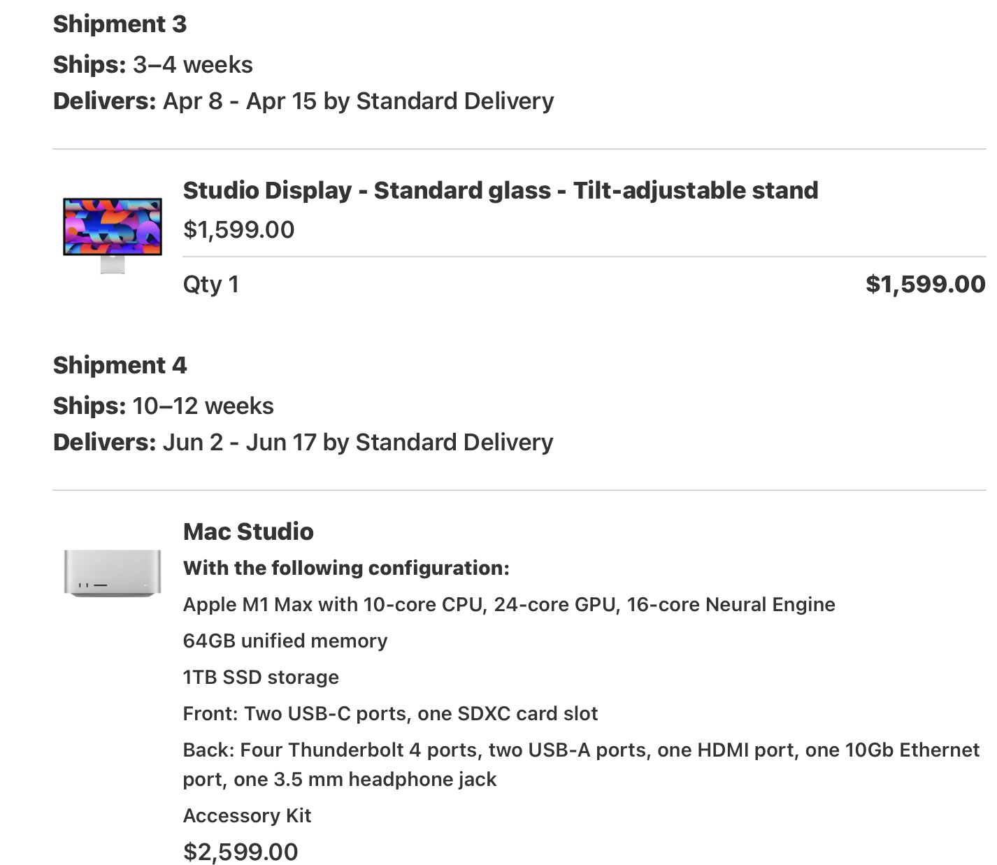 I'll admit I'm quite eager to move on from my late 2012 27" iMac. But it is still up to everyday tasks and runs Logic reasonably well. Especially now that I have a UPS tracking number I think I'm ready to let go of my anxiety--I'll almost surely be setting up my new Studio within a week. And overall I've enjoyed this forum, but if I hadn't come across this thread I probably wouldn't have experienced one iota of worry.You're spot on.