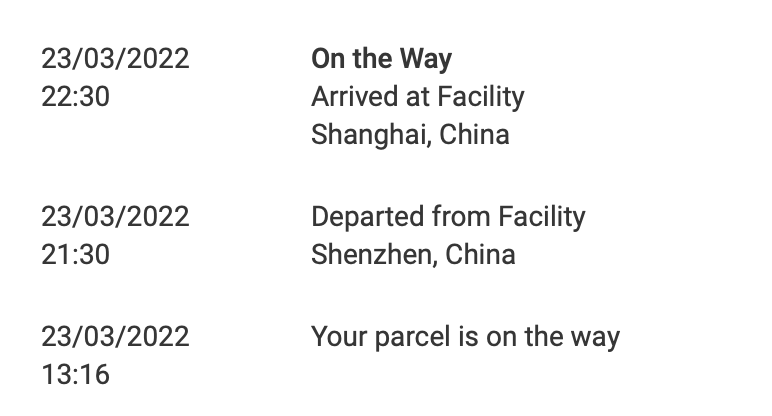 FYI, I’m in France. My order was order was supposed to arrive either the 21st or 22nd of March. Spoiler : it did not.