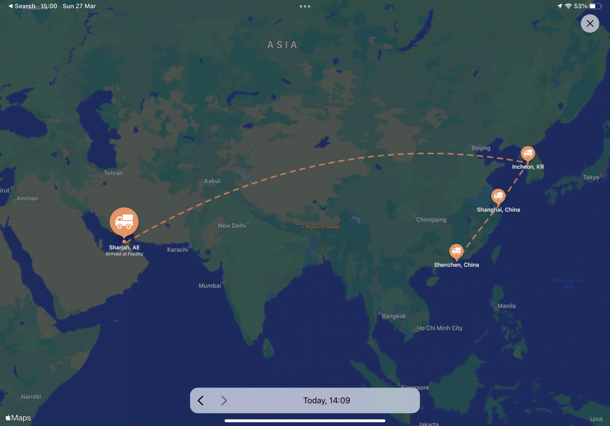 After 4 Days in Shanghai I finally had a departure scan overnight and it’s arrived in Korea Now it needs to get to Cologne!