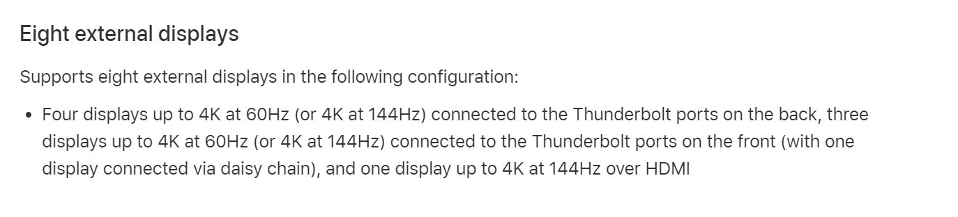 Does anyone know how is it doing 8? or should it be 7 thunderbolt on the back plus hdmi?