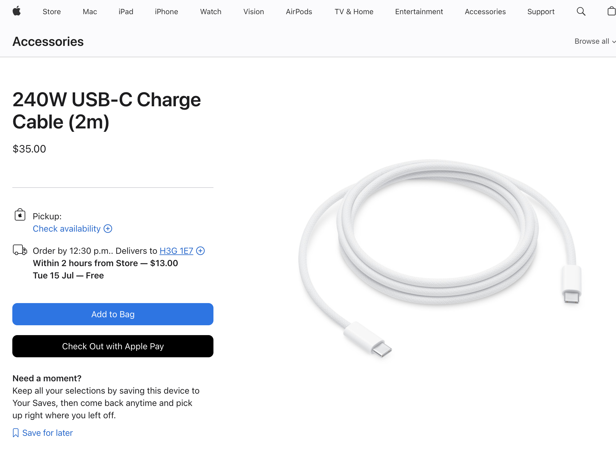 It came with the 29 watt charger but no usb c cable, so I stole a 2 meter usb c cable from the Apple Store and now everything works fine.