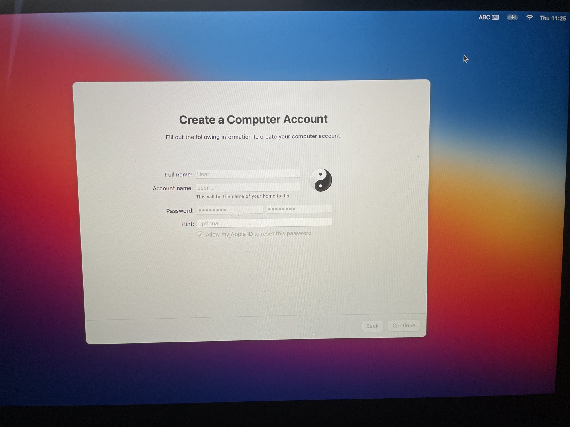 Hi! I just clean installed Big Sur on my MacBook Air and it’s stuck at Create a Computer Account.