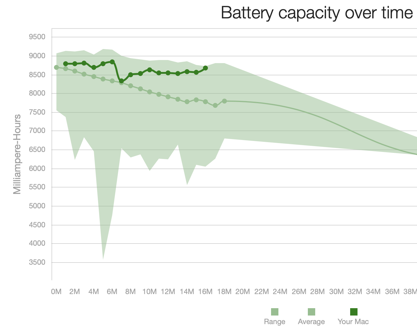 I have heard that MacBook batteries are supposed to maintain good condition for around 1000 cycles and I'm still nowhere near that number and if battery degradation would continue at this rate, at 1000 cycles battery health would only be at 43% if not lower... Maybe it's something that's covered under apple one year warranty?..