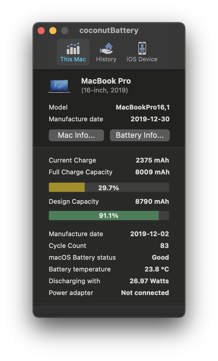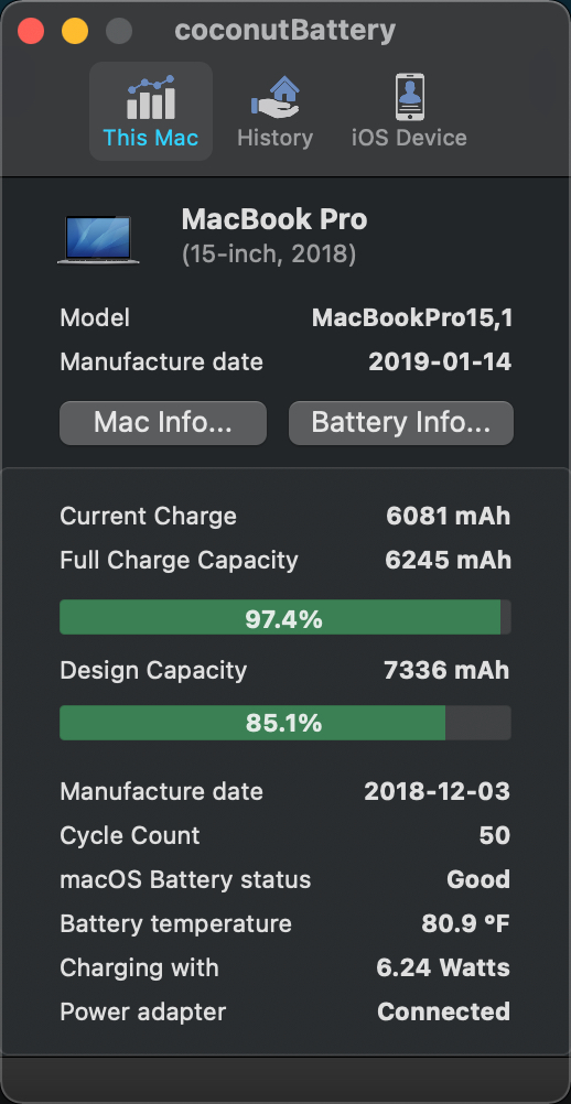 Just few days ago i noticed how awful my battery health is. At 235 cycle count coconutBattery shows that my battery health is at 86.6%. Considering that my MacBook is just around 6,5 months old, it doesn't look good.