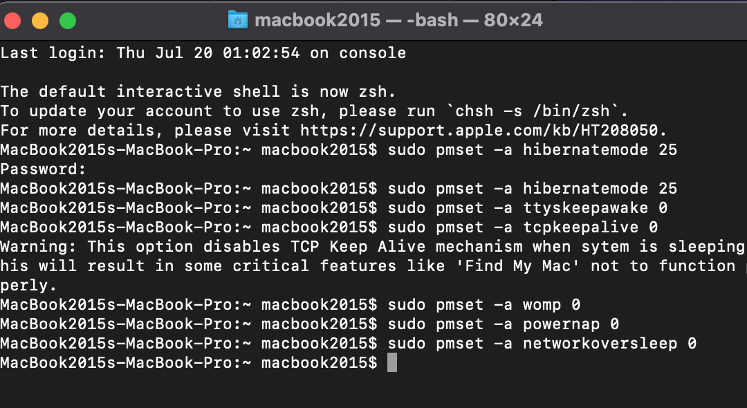After running the commands, i gave full charge and unplugged 2 similar computers.
