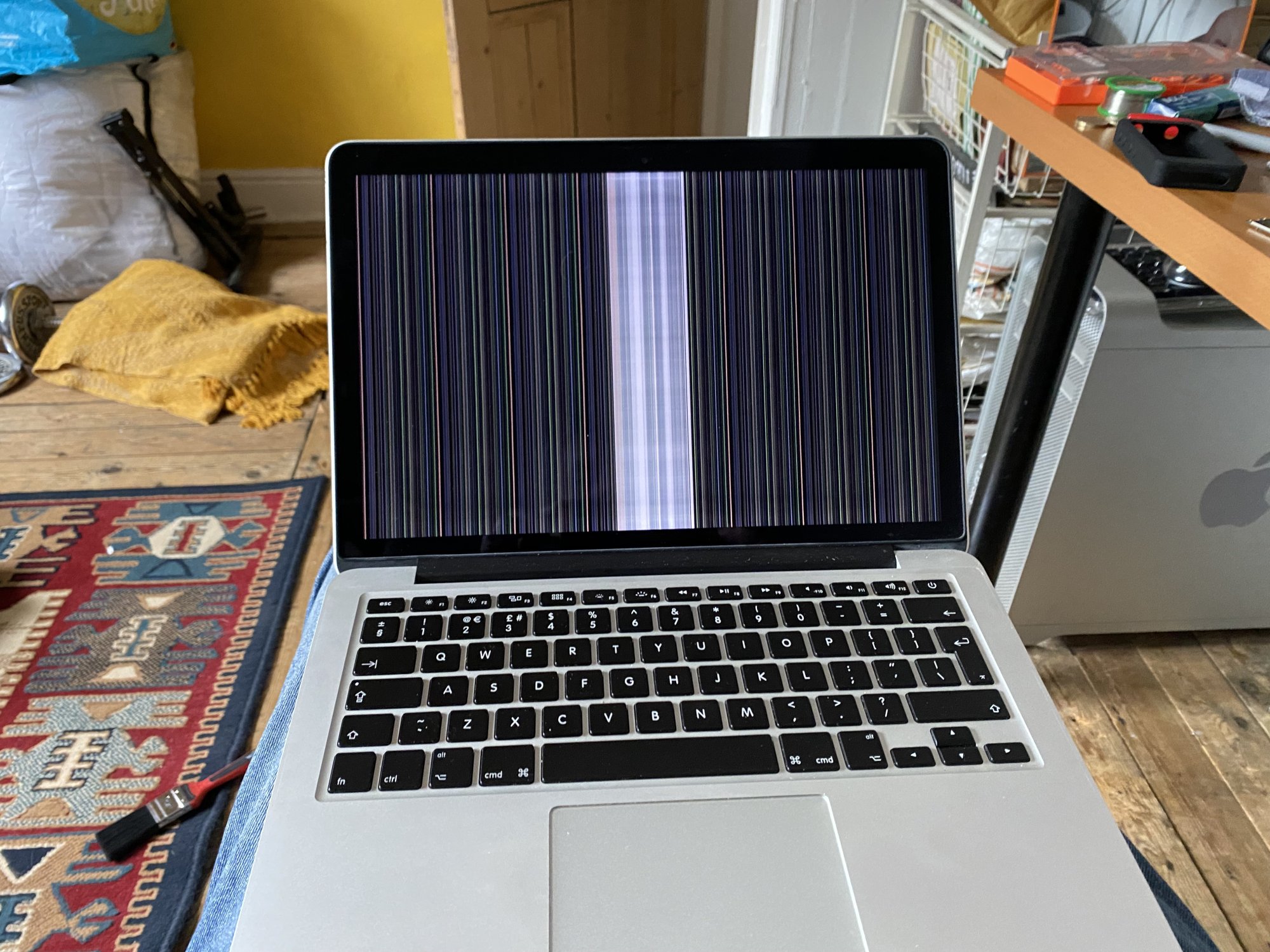 I have an old MacBook Pro 13" 2013 Retina pro that I would like to get working. It has developed vertical lines on the screen (see pic). It is fine plugged into an external monitor, which makes me think it is a screen problem, rather than a logic board problem. I have had a look about inside and can't see any loose cables, etc. I haven't dropped it or cracked the screen as far as I can tell.
