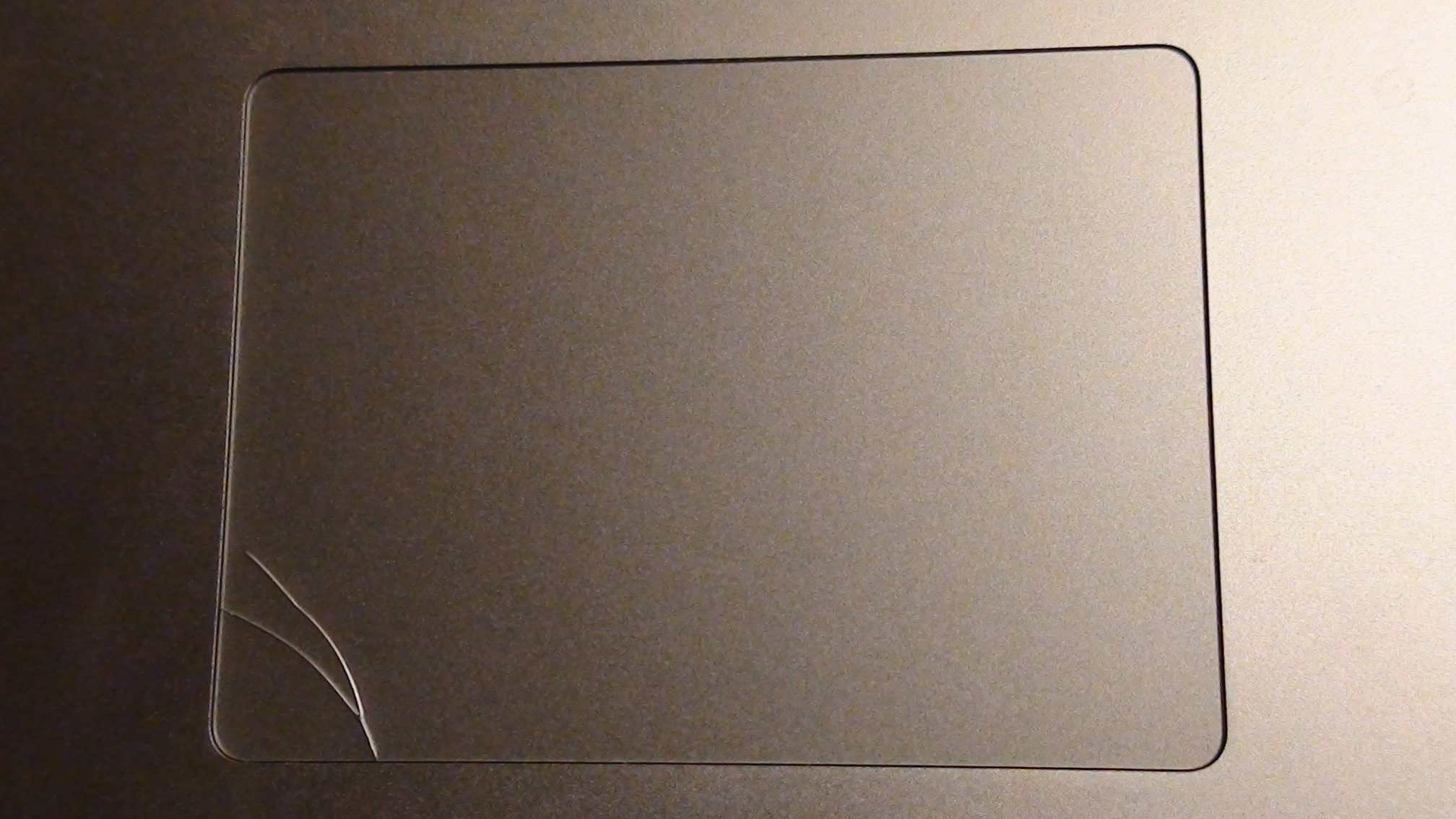 So my issue was I was trying to test out the bottom corner clicks for Secondary Click. I set the option to the bottom right corner and it registers the secondary click as it should. Switching it to the left however is the opposite, I had to apply just a little more pressure to press down for it to register a legit click, but to my surprise while pressing down I hear a crack noise noticing the trackpad just cracked. I copied the example in the system preference trackpad video example of how they do it. As you can see in the picture the crack is just where it's suppose to pushed.