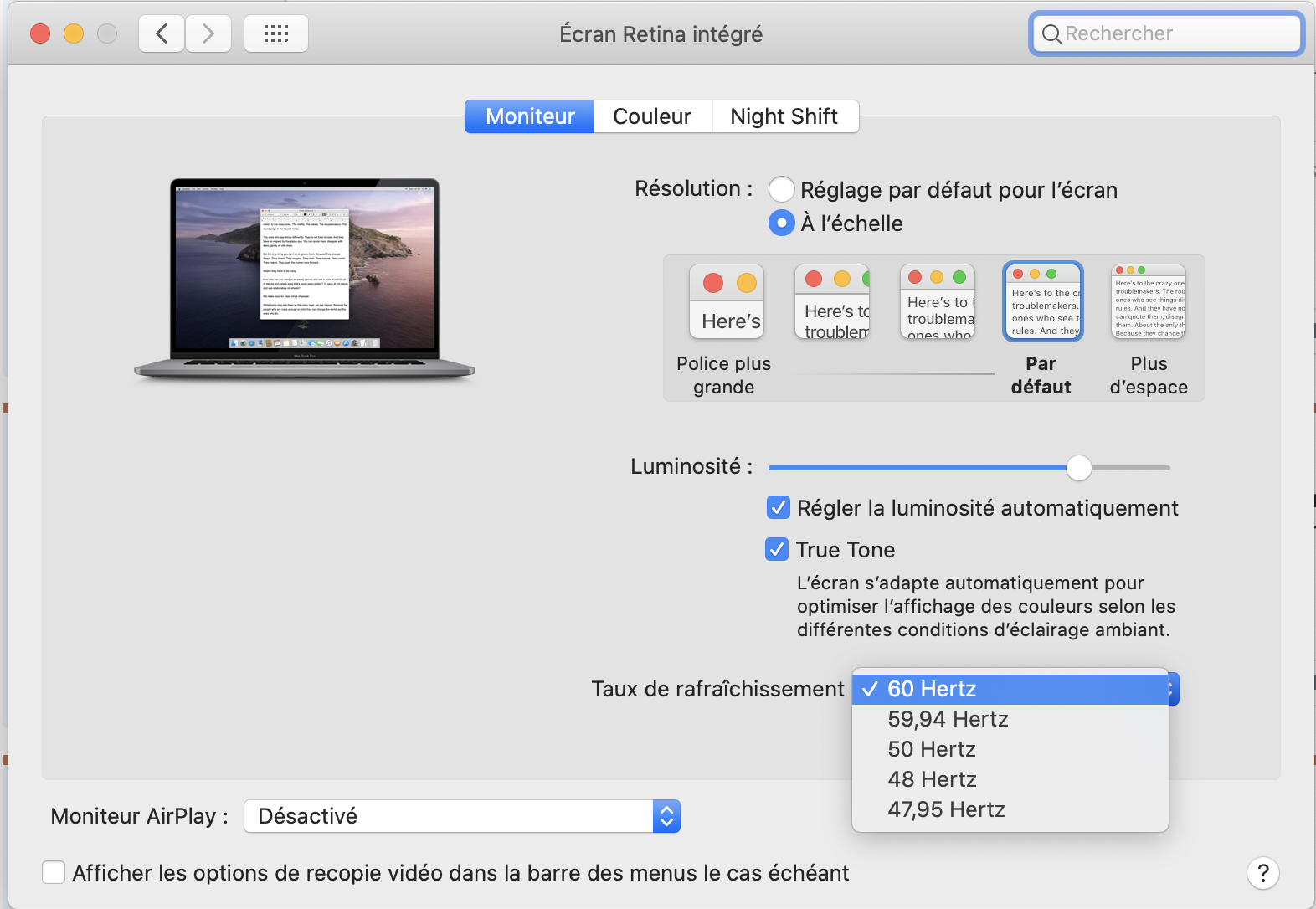 Just bought a brand MacBook Pro 16 yesterday. After updating the supplemental update (Build 19B2106), I noticed that the Refresh rate drop down menu was not displaying in the display menu of the command center.