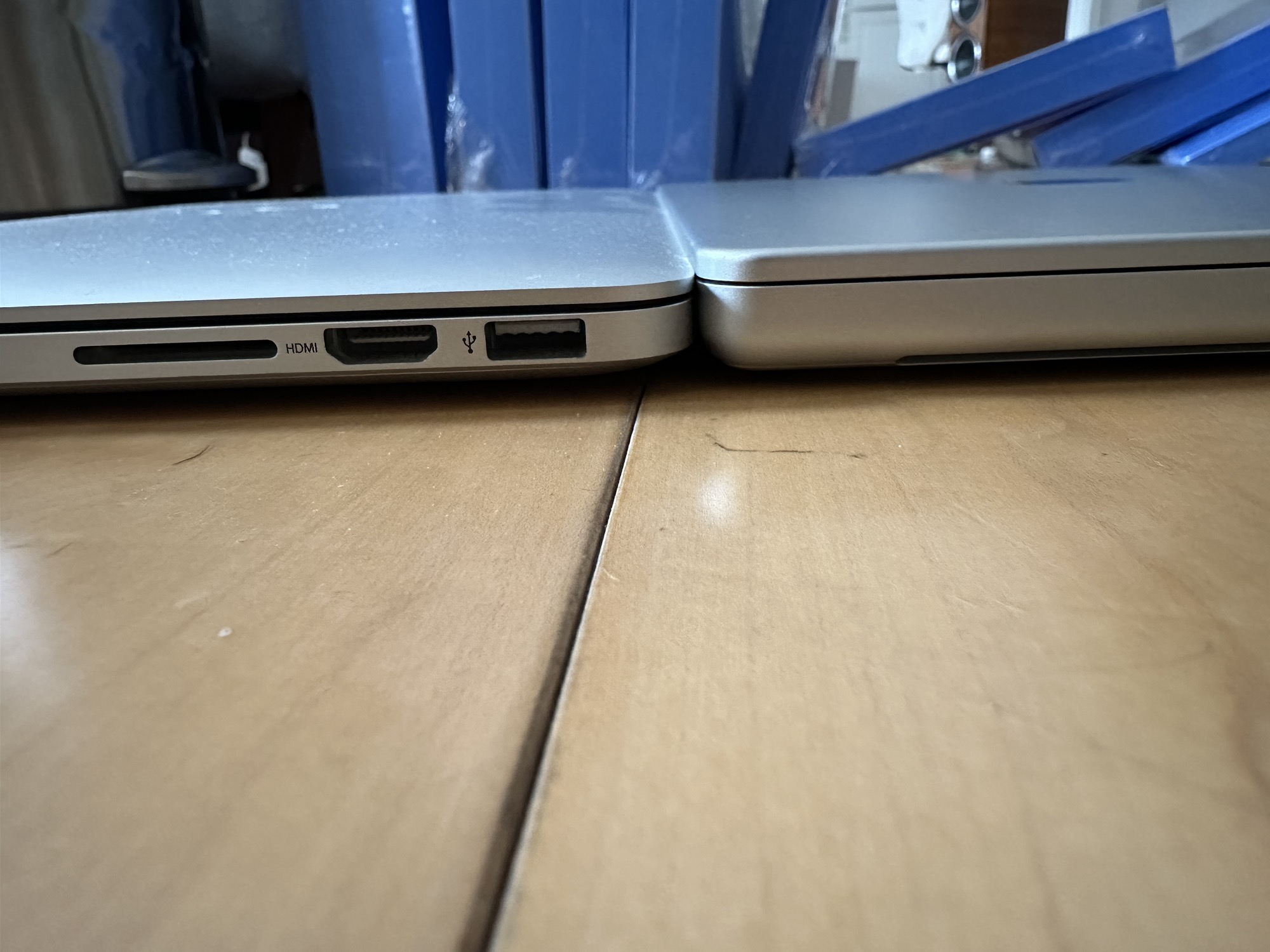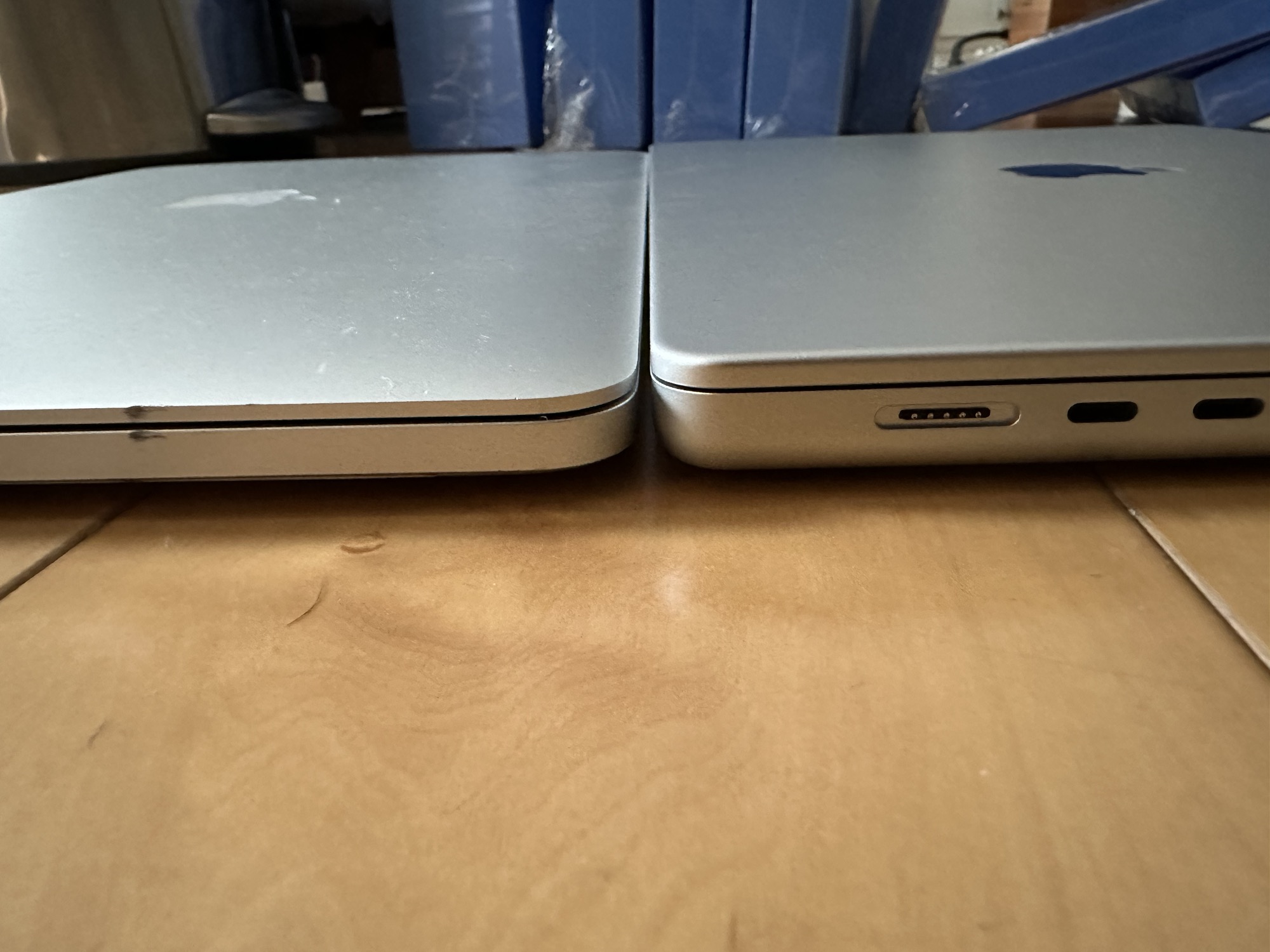 I got my previous notebooks together for a comparsion. I really like the speed and quietness of the new M2 Macbook Pro, but it's thickness was definitely jarring at first - after years and years of thinner notebooks. I would definitely still take the M2 MBP any day, but aesthetically I definitely like the touchbar 2016 MBP the besthttps://imgur.com/a/3LcpPrq/