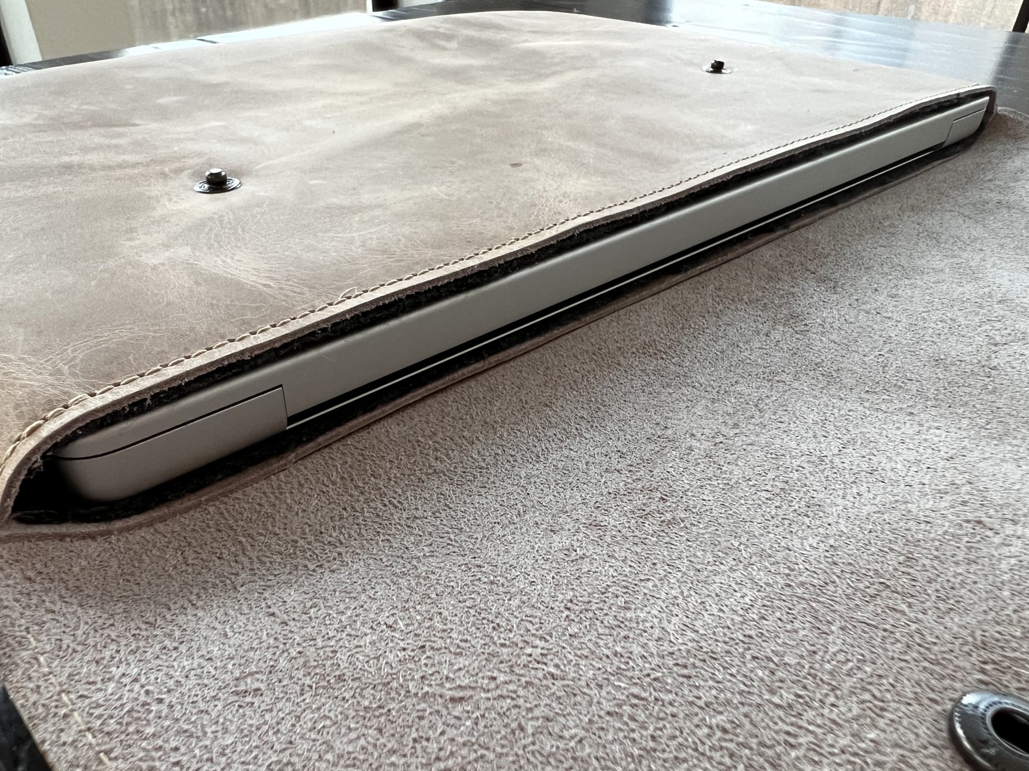 I’ve seen a few people ask if the buttons rub against the MBP and I knew Mission Leather had a liner but should express better that their liner makes it so there is no rubbing as you can see in the pics.