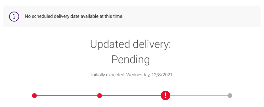 My shipping followed the same path. FedEx still says Scheduled Deliver: Pending.Ordered Nov 3. Shipped on Nov 23