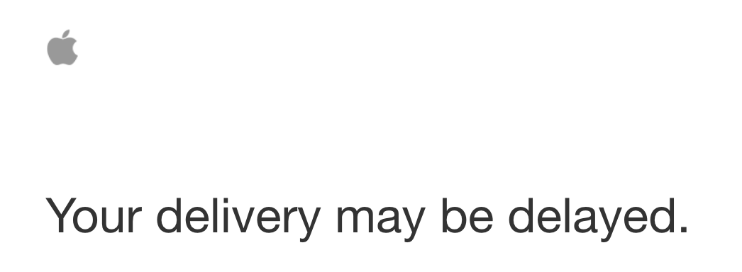 Just got an email from Apple that my package may be delayed....oh well will see...still hoping for Tuesday