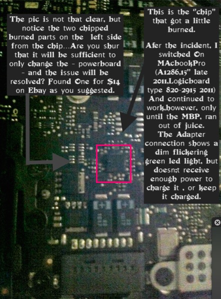 1. Does this makes any sense? seeing that the chip witch was burned, nowhere near that power board