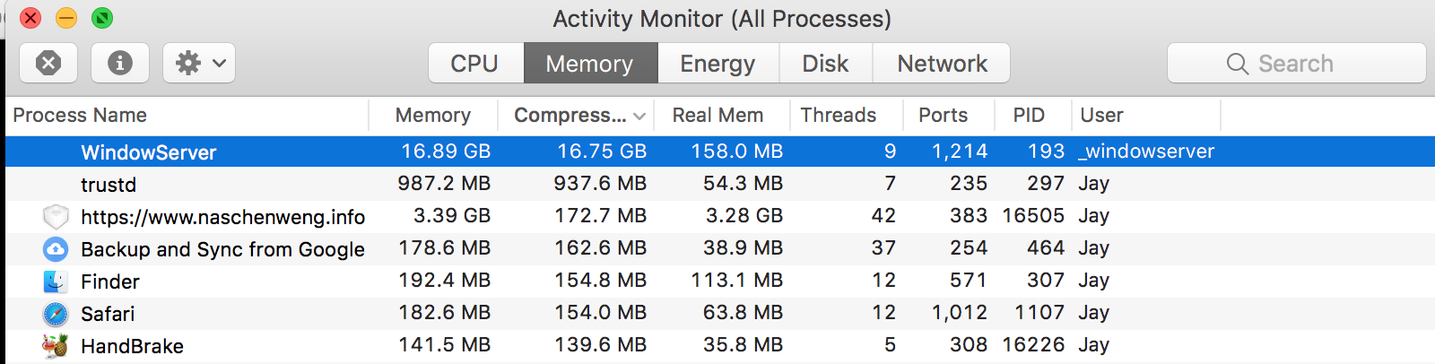 Memory leak? I mean its great that its compressing it and not throwing it into active but still.. almost 8GB of swap for WindowServer process?