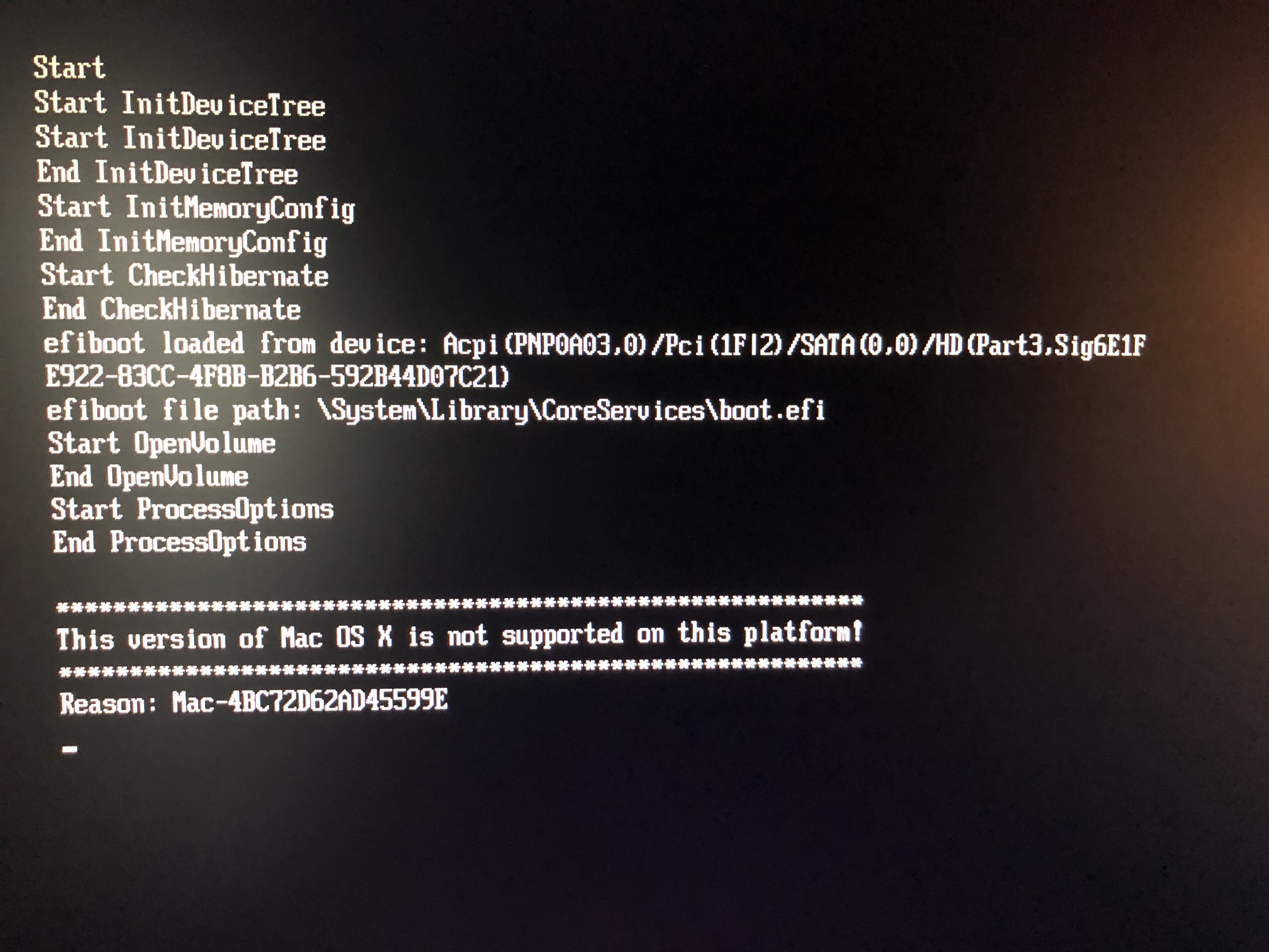 Hello, I have a MacMini5,2 with a FusionDrive. I did all steps with dosdude1‘s Mojave Patch tool, but for regular boot it stays with the forbidden sign or in verbose boot with this message: