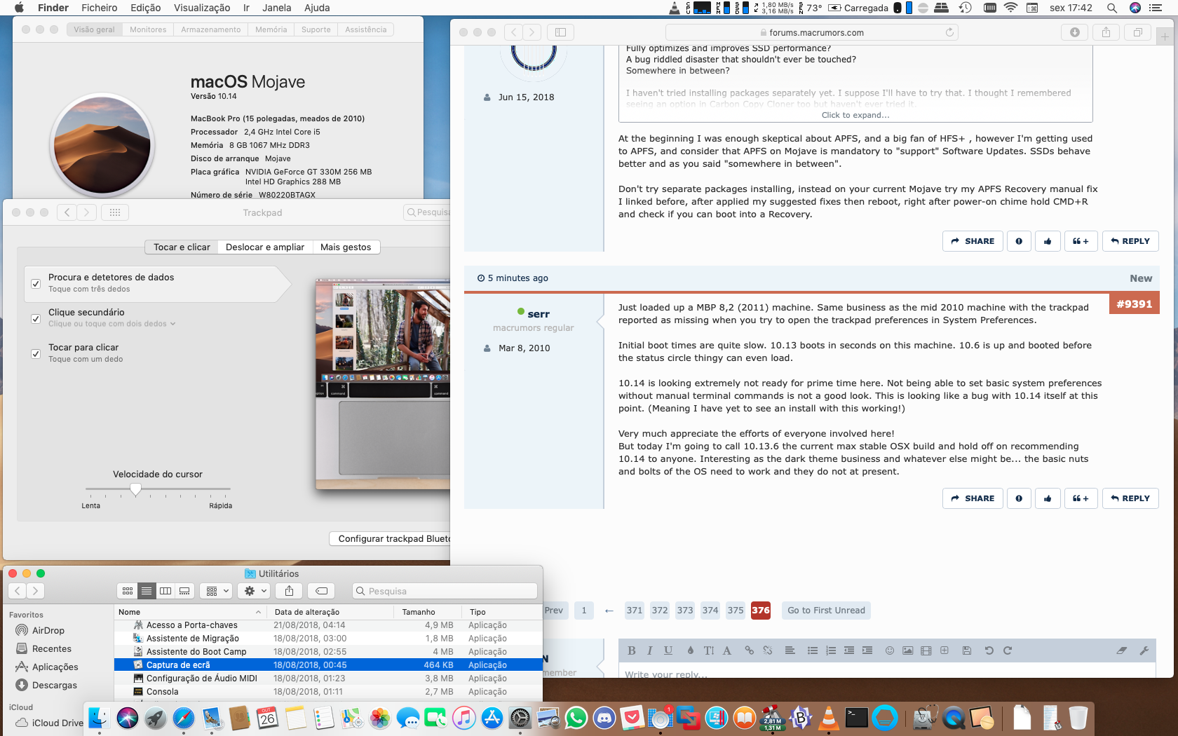 Everything working hereJust loaded up a MBP 8,2 (2011) machine. Same business as the mid 2010 machine with the trackpad reported as missing when you try to open the trackpad preferences in System Preferences.