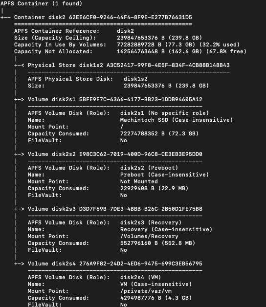 diskutil apfs list