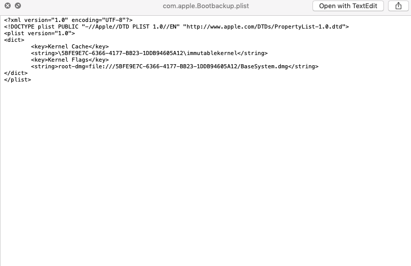 -Could you show me the content inside the com.apple.BootBackup.plist ?