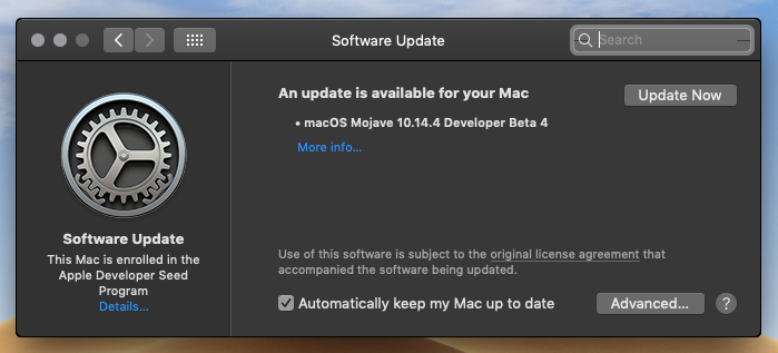 Damn. I can't see this fixing itself at this point. Looks like it might be time for some more investigation...10.14.4 Beta 4 (Developer) installed on my Unsupported MBAir4,2.