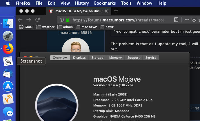 Given that my mbp 5,3 upgraded fine to .4 without the need for .3 frameworks, this all must be machine/gpu related. My experience was surprisingly smooth (and no KPs to date). I was expecting the worst with the accounts from this thread.I tried installing 10.14.5 but as after I logged in the screen went black and got a spinning circle so went back to 10.14.4 reapplied the the patches got a KP a few times then replace the openGL and GPUSupport framework the dosdude's accel and seems to be stable no crashes on my iMac 9,1