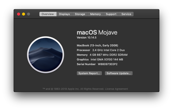 I am running Mojave on a MacBook 4,1 using Julian Fairfax's tool but I have a few questions on how to fix a couple issues