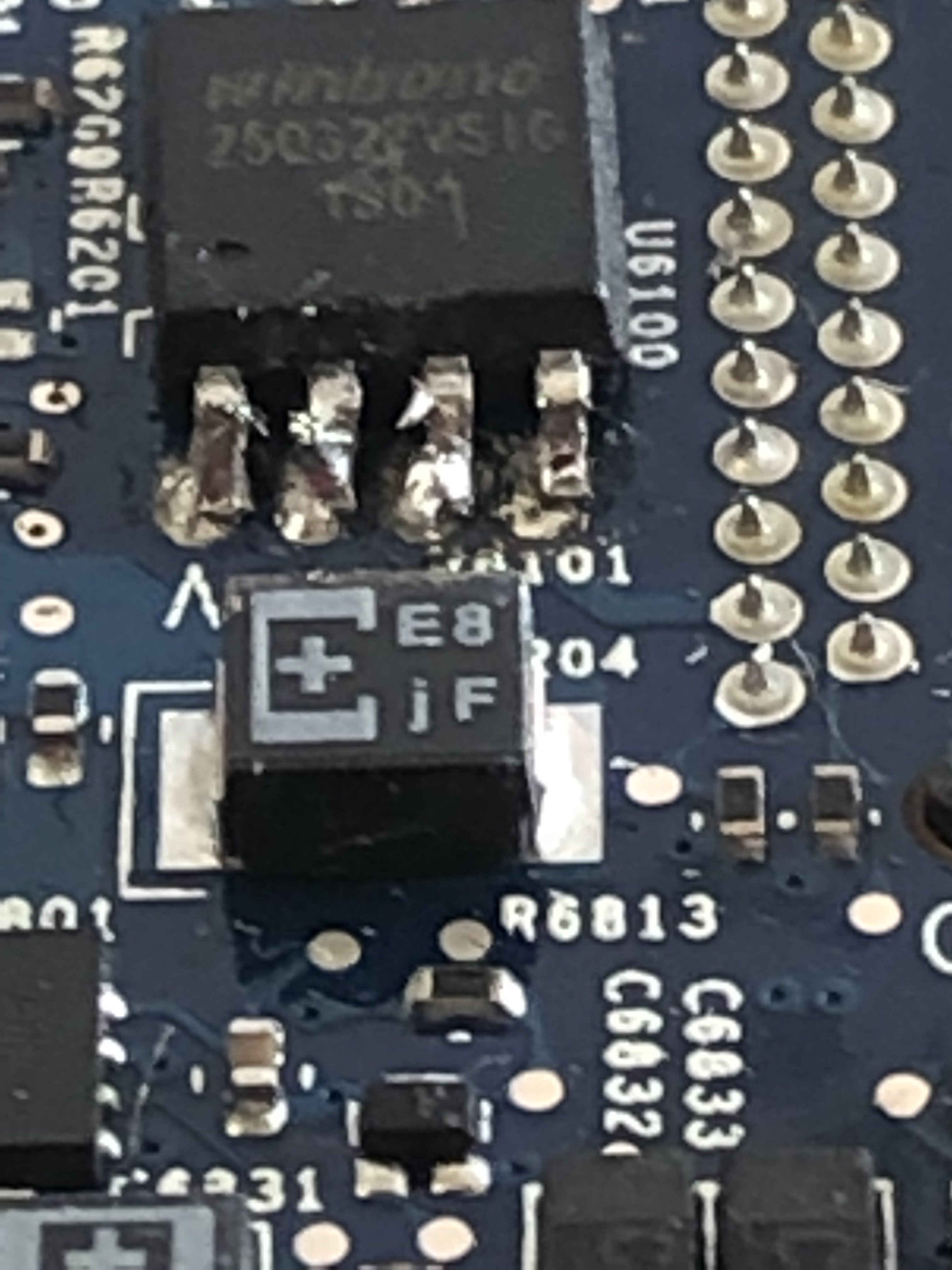 That's my new EFI chip after replacement. Not a pretty work but it solved the problem. Ordered from eBay