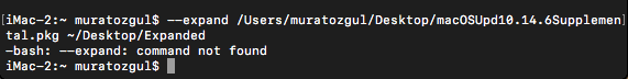 ow drag and drop the .pkg from the Desktop into the Terminal window and type after a space ~/Desktop/Expanded hit Return and wait, this takes a little while.