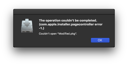 Go back to Terminal enter pkgutil --flatten ~/Desktop/Expanded ~/Desktop/Modified.pkg