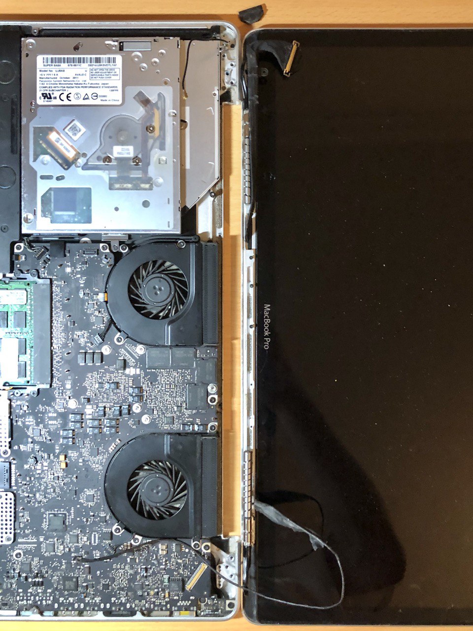 I almost gave up on this. But I had the display connected face down (hinges need replacement). I removed the logic board and gave it a little light baking…but was too scared, so I took it out.