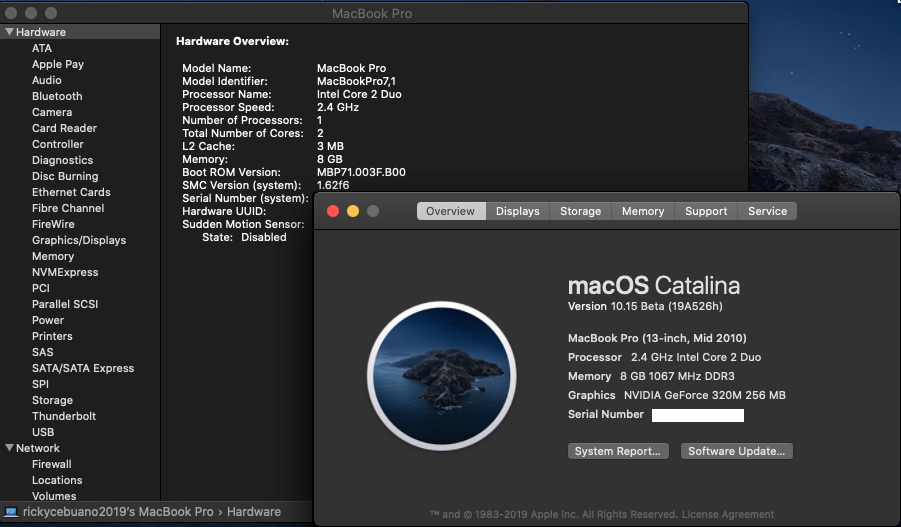 Aug 5 18:09:34 MacBook-Pro OSInstaller[617]: Hardware: MacBookPro6,2 @ 2.40 GHz (x 4), 8192 MB RAM
