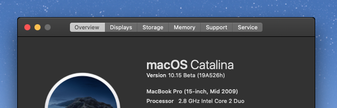 Also using experimentally 10.15.0 DP5 on an external (USB) SSD. Patcher 1.0.6 used to download it. Chose option "Disable APFS Booter" then did "Install to This Machine" which already had an earlier Catalina on it, without problems... And happily using Photos! It seems Catalina provides all I need and the MBP5,2 can serve me well in its 11th year.
