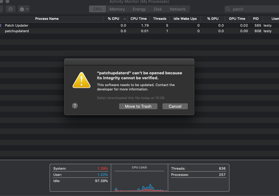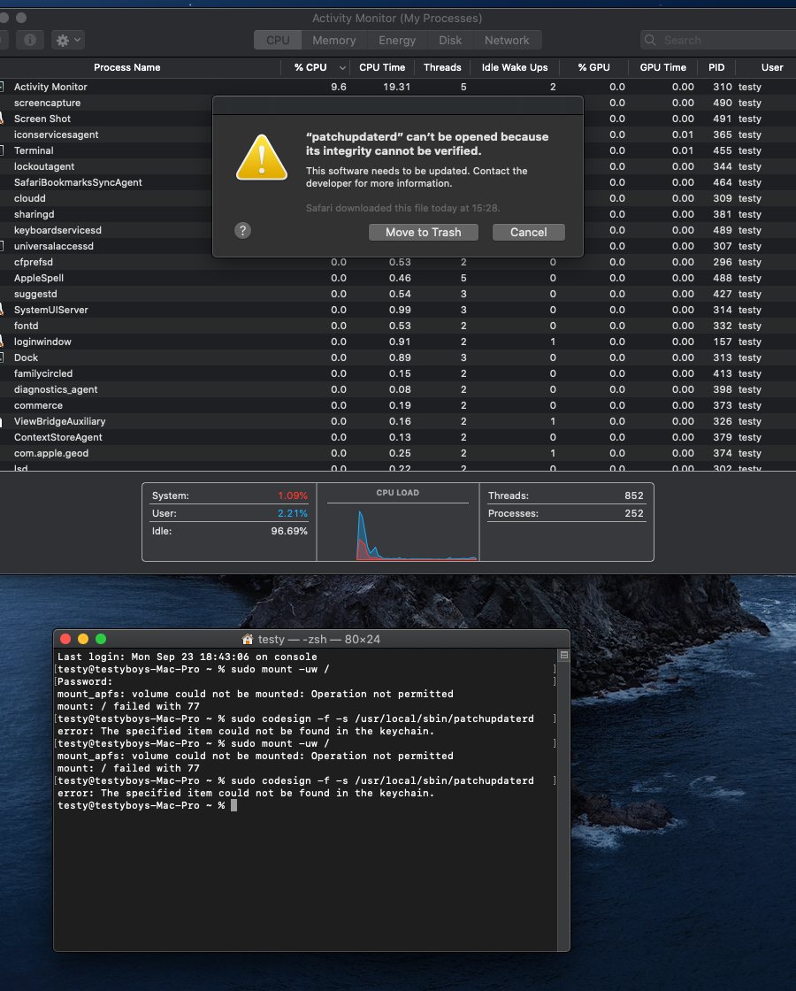 sudo codesign -f -s - /usr/local/sbin/patchupdaterd