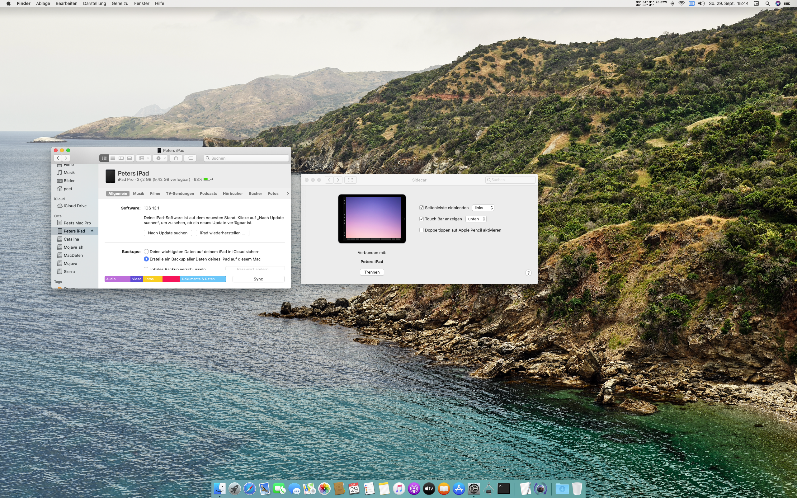 The hint with the Finder helped. No more error message, but with Sidecar still Blackscreen on the iPadPro.