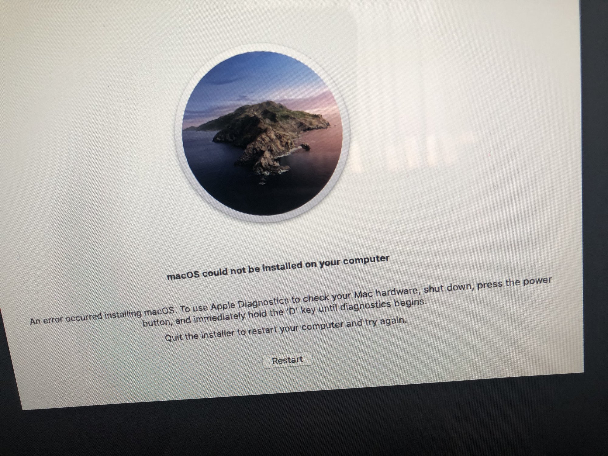 With this kind of specific error, if I create a USB bootable drive (External HD), with version 1.2.1 - 10/29/2019 and using the MacOS version available for 1.2.1, I need to format the SDD that is giving this error (photo) or I can do the installation over without formatting? Because turning on the Mac Pro with the OPITION key pressed, using the External Hard Drive with Catalina Beta Bootable Drive, the screen stay