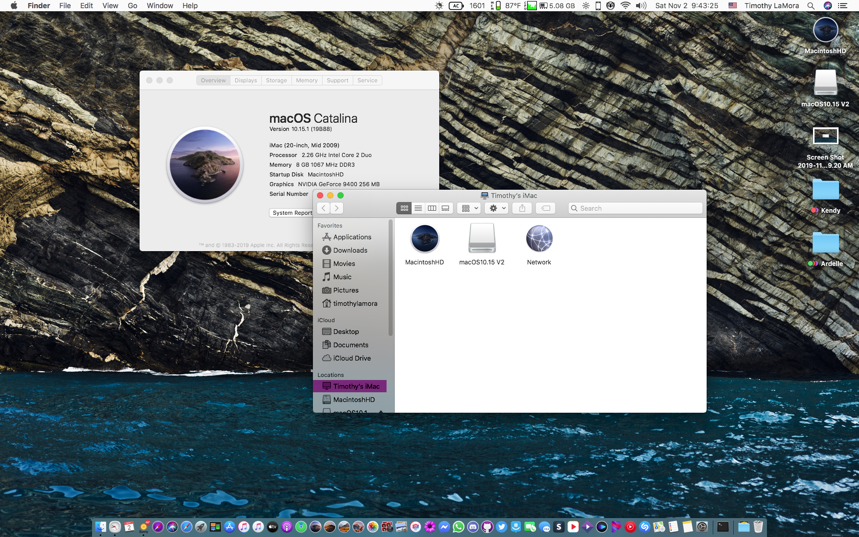 Just an update on status of Catalina 10.15.1 on a 17 inch MacBook Pro 5,2 with Samsung Evo 860 Pro SSD (trim enabled), 8 MB RAM, Core2Duo CPU and NVIDIA GeForce 9600M GT 512 MB
