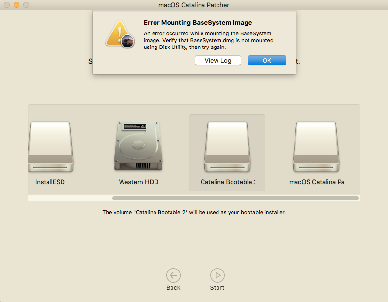 [automerge]1584458368[/automerge]so I was able to get the catalina patcher on a USb. was able to make it a boot installer. it lets me select it when I restart my mac, im able to go through the install process but as its about to finish i get this error message