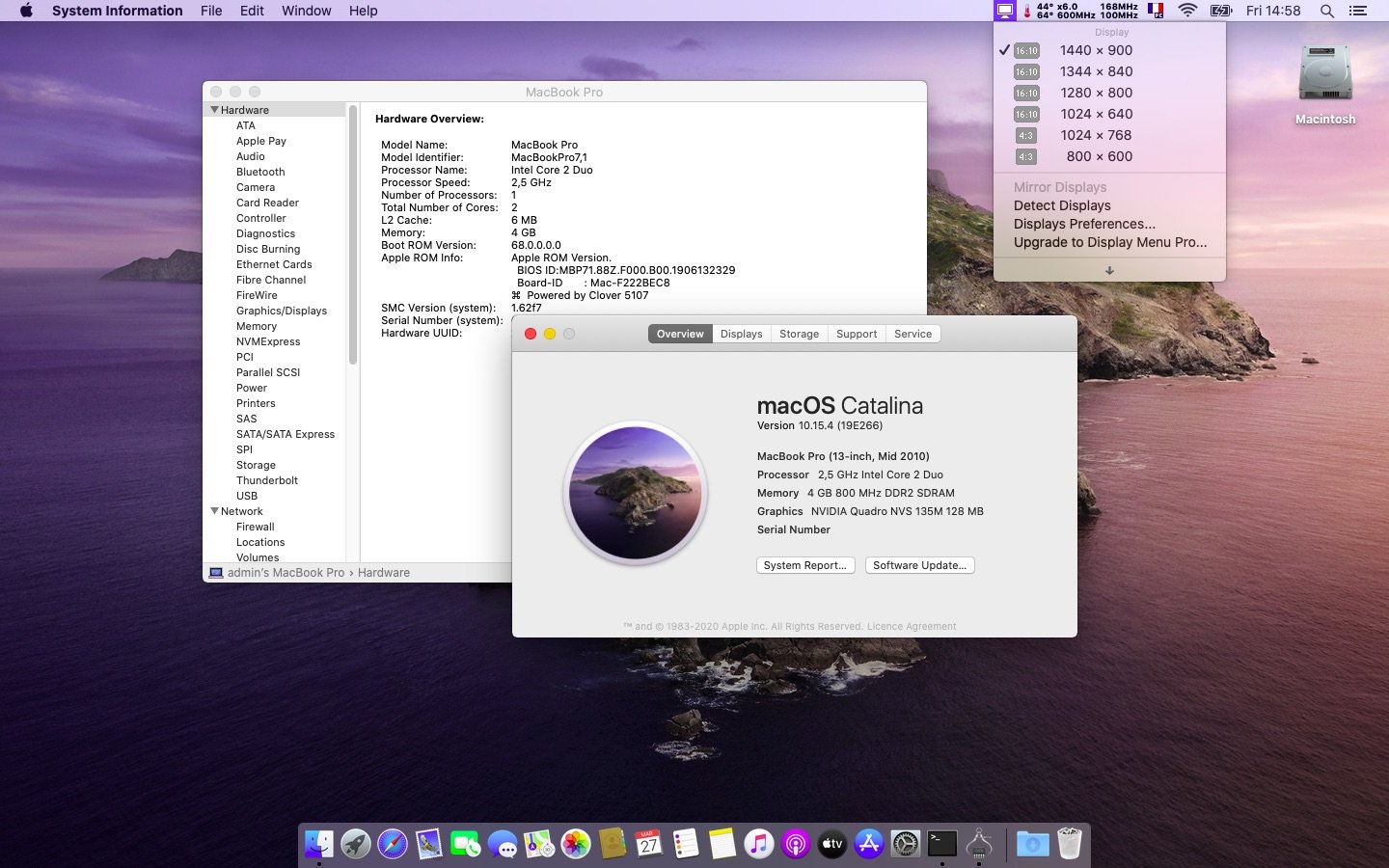 - replacement of PlatformSupport.plist in in /S/L/CoreServices by a patched version (to support MBP7,1 SMBIOS)