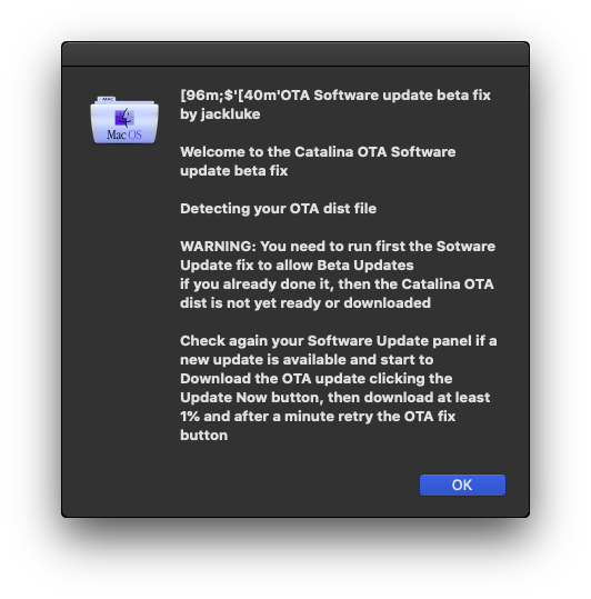 Ok. BTW I am on the OC. (Just like you said I set timeout 20sec etc. Here is the weird thing. Its already finished the download. I click to Update Now but I cant see the MacOS installer on the bootpicker! Every restart it shows the update but never install it.Close the app, and retry OTA update fix when OTA downloading is at 10% , example if your download package is 3 GB, download at least 300 MB before reapplying the fix.