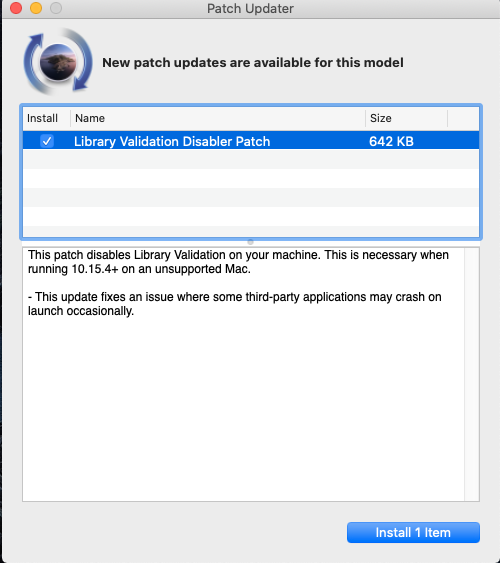 - I subsequently installed the Library Validation Disabler patch and have been able to get apps working (sometimes after 5 crashes !) using the Patch Updater app.
