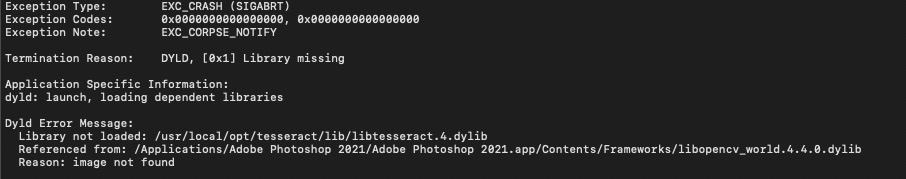 Creation of the opt/openjpeg/lib/ worked but Shop still not working because the libopenjp2.7 necessary as you see in the error log here included is not the same than the one available in the send space download which is libopenjp2.2.7.you do the following steps in Terminal:
