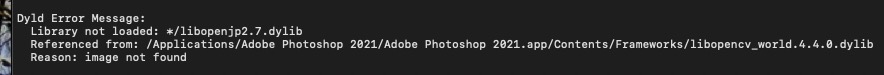 Code:sudo cp libopencv_world.4.4.0.dylib /Applications/Adobe\ Photoshop\ 2021/Adobe\ Photoshop\ 2021.app/Contents/Frameworks/