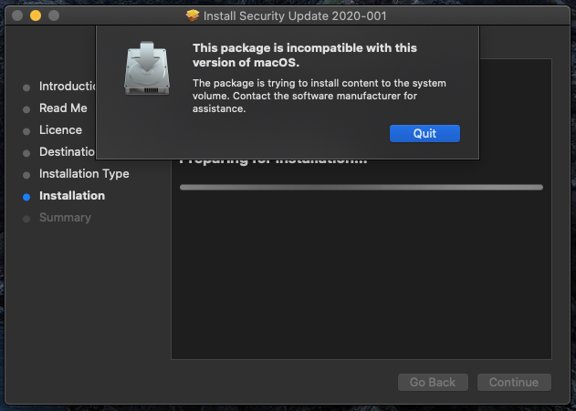 I got through all the prep fine and then get an error "The package is trying to install content to the system volume. Contact the software manufacturer for assistance." This is targeting Catalina.Hi KennyW